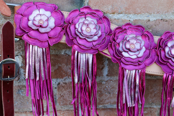 Wide Tripper Collar made by Marty Byrd, and we attach the flowers and fringe with extra heavy duty rivets. These are the same quality Collars we've always had!