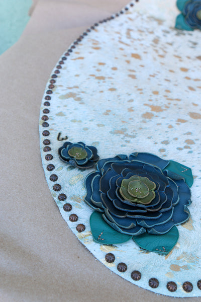 15" x 25" Oval Cowhide Centerpiece with Leather Flowers and Leather Leaves