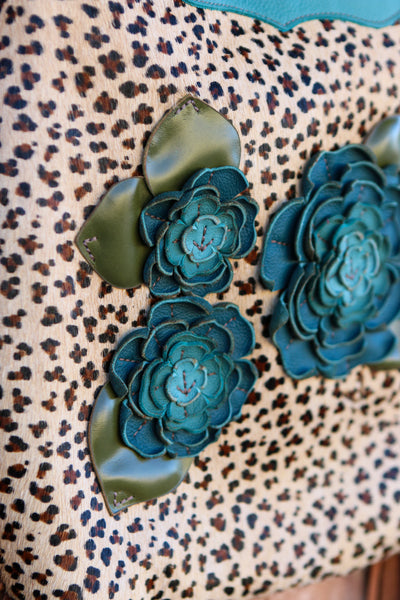 Cowhide Full Size Crossbody Purse with Leather Flowers and Leather Leaves.