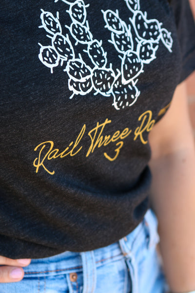 Dark Grey Unisex Tee with 'Original Rail Three' design.